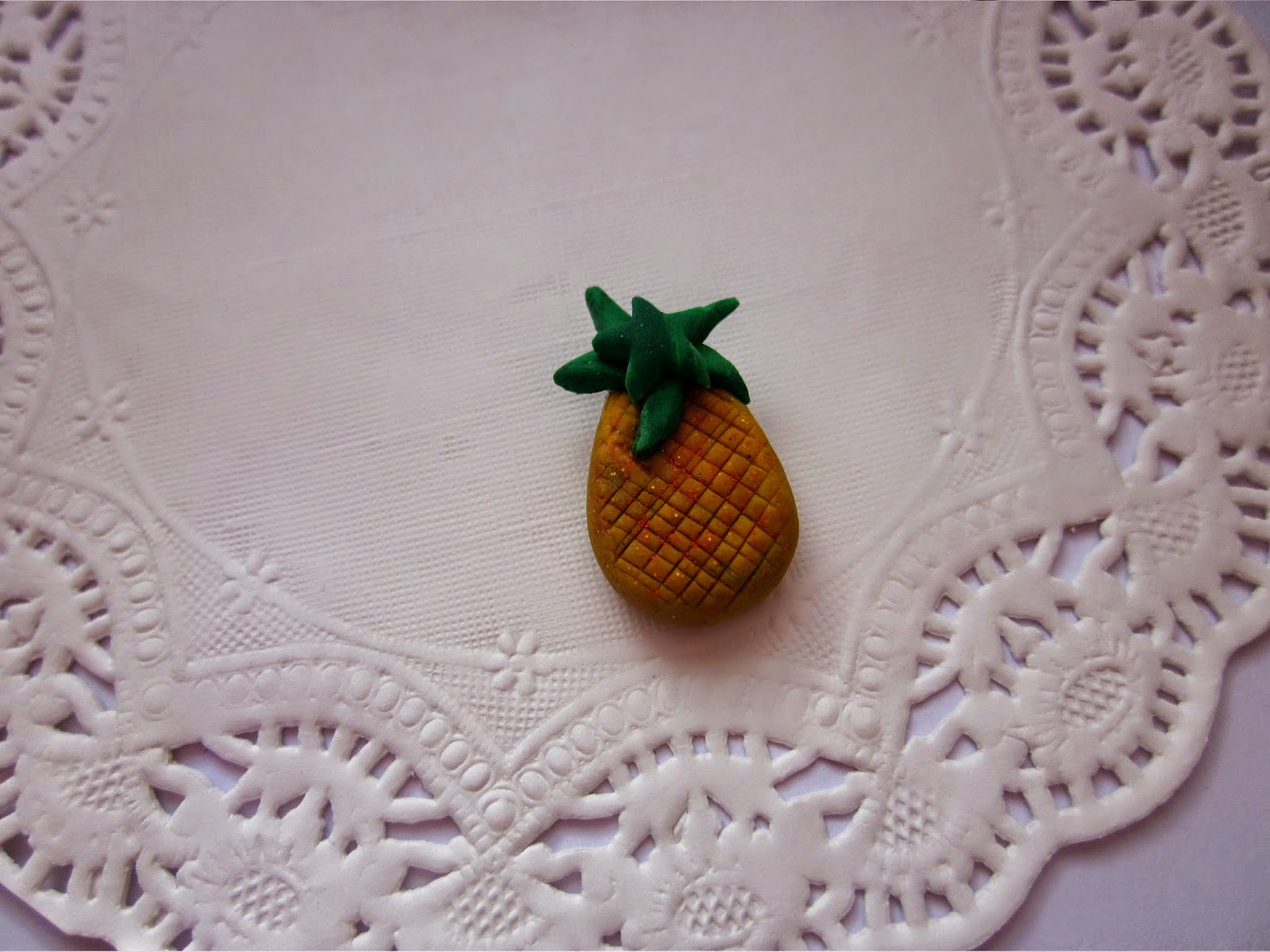 The texture of the pineapple is added one line at a time by hand to give the pineapples skin the right look. The pendants are topped with two layers of green 'leaves.' Now in my Etsy shop!